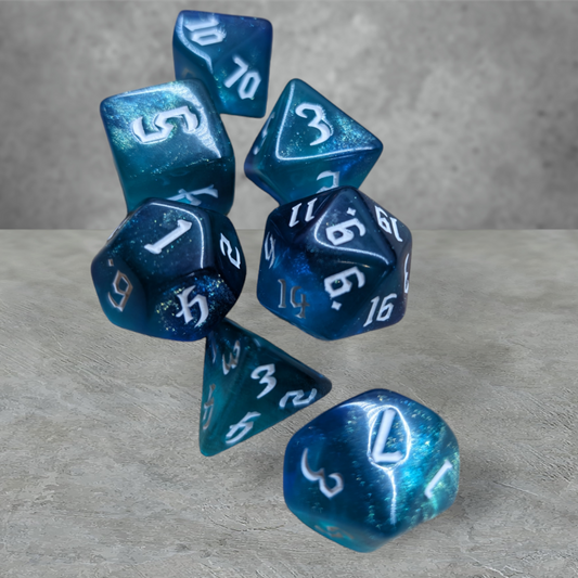 Aurora Borealis Liquid Core Dice Set – Sparkly Pink, Green & Blue Polyhedral Dice