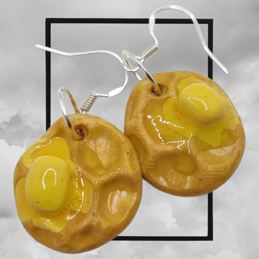Fun topped American waffle polymer clay earrings - butter & syrup waffle