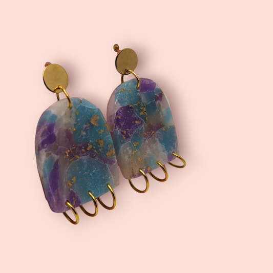 Fluorite fantasy collection polymer clay gemstone inspired drop earrings drip