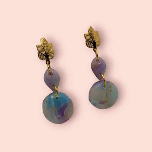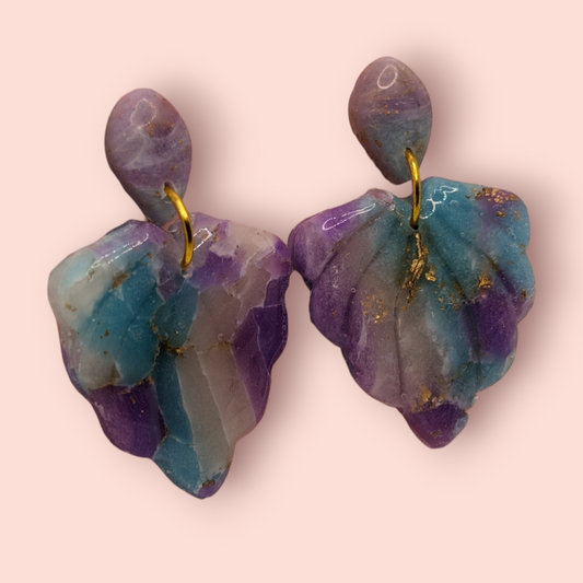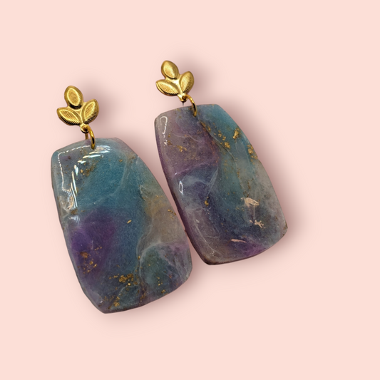 Fluorite fantasy collection polymer clay gemstone inspired drop earrings leaf