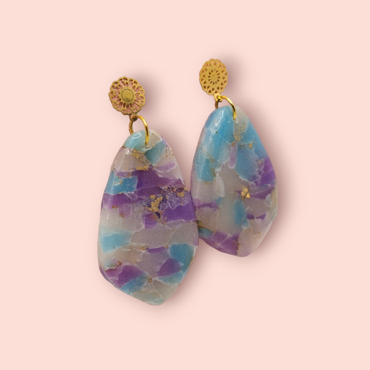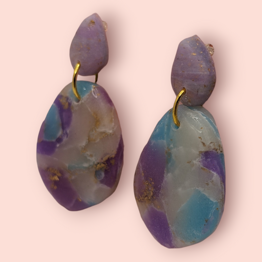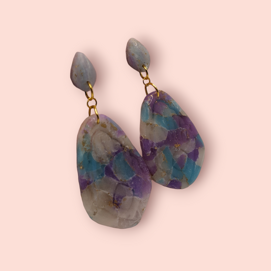 Fluorite fantasy collection polymer clay gemstone inspired drop earrings (droplet)