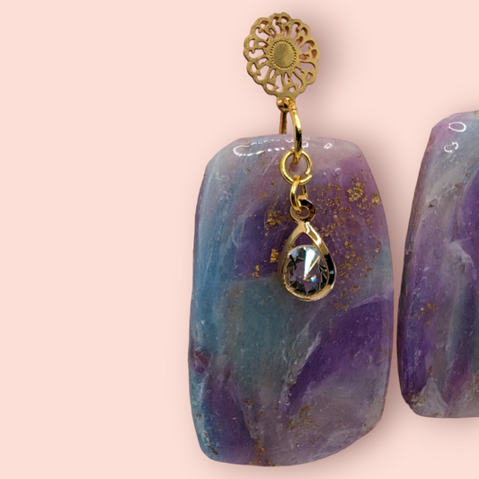Fluorite fantasy collection polymer clay gemstone inspired drop earrings crystal