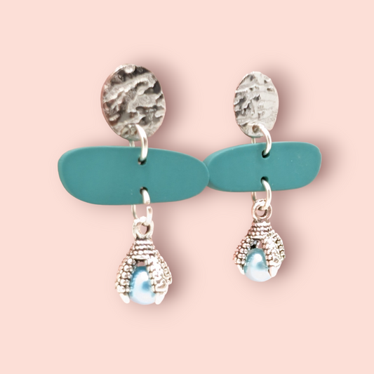 Fluorite fantasy collection polymer clay gemstone inspired drop earrings simple stud