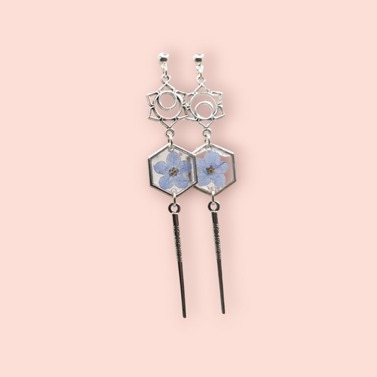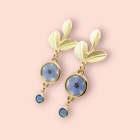 Forget-Me-Not Fantasy: Handmade Botanical Floral Dried Flower Earrings with Cottagecore Charm