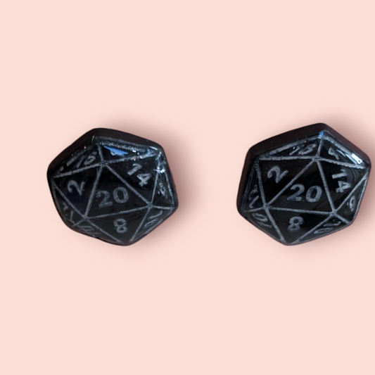 Large D20 stud earrings tabletop roleplay gaming dice